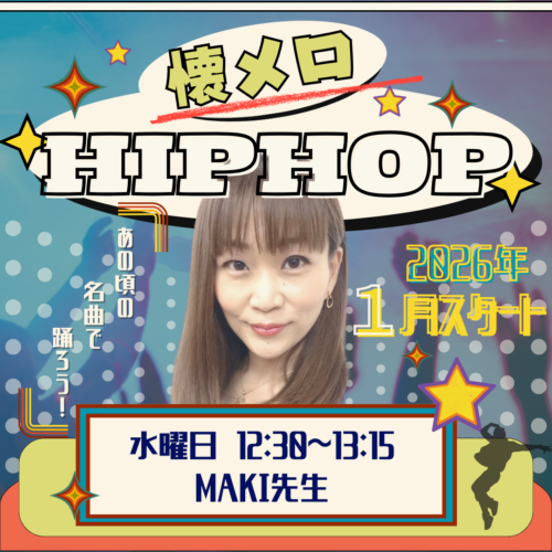 2026年1月より、新しいフィットネスクラスが開講となります☺️🎉 🔸🔶🔸🔶🔸🔶🔸🔶🔸🔶🔸(水)12:30〜13:15🆕懐メロHIPHOP担当インストラクター MAKI🔸🔶🔸🔶🔸🔶🔸🔶🔸🔶🔸 こちらの…