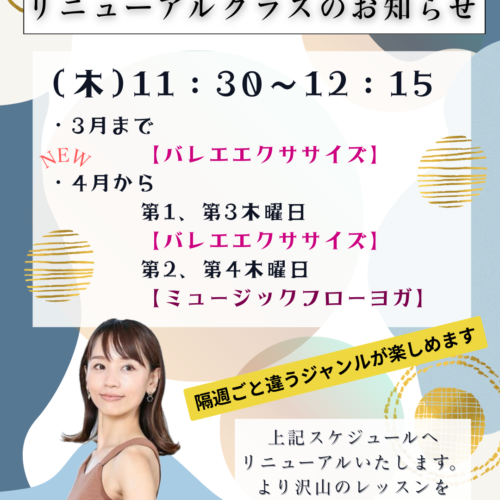 4月より(木)11:30〜12:15 バレエエクササイズ クラスが、第1、第3木曜日の隔週クラスになります🙇🏻♀️🩰 第2、第4木曜日ですが…過去にレギュラークラスで実施されていた “ミ…