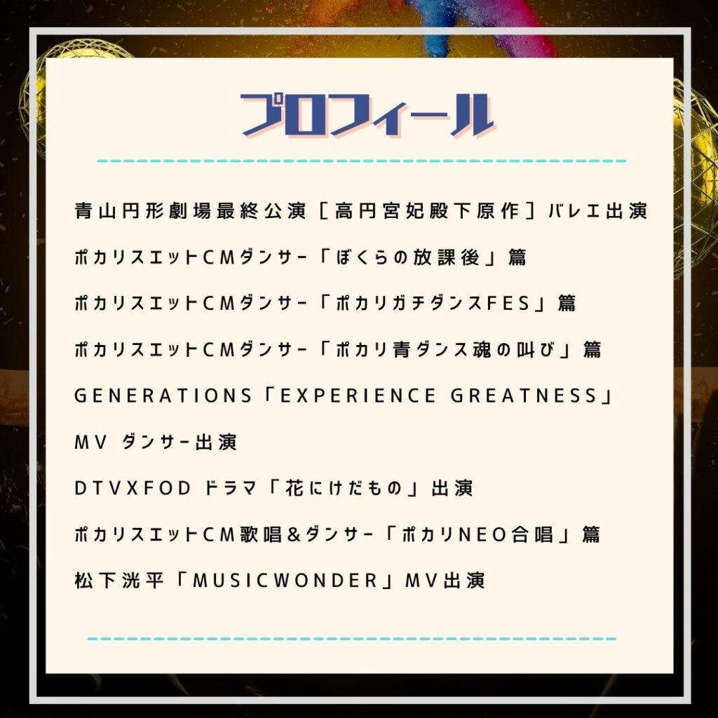 ポカリスエットのCMや有名アーティストのMV出演など、現役で活躍する高い技術を持っています🎉